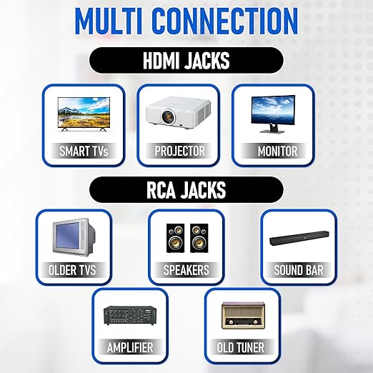 • Dual connectivity (HDMI & RCA) ensures compatibility with old and new TVs.